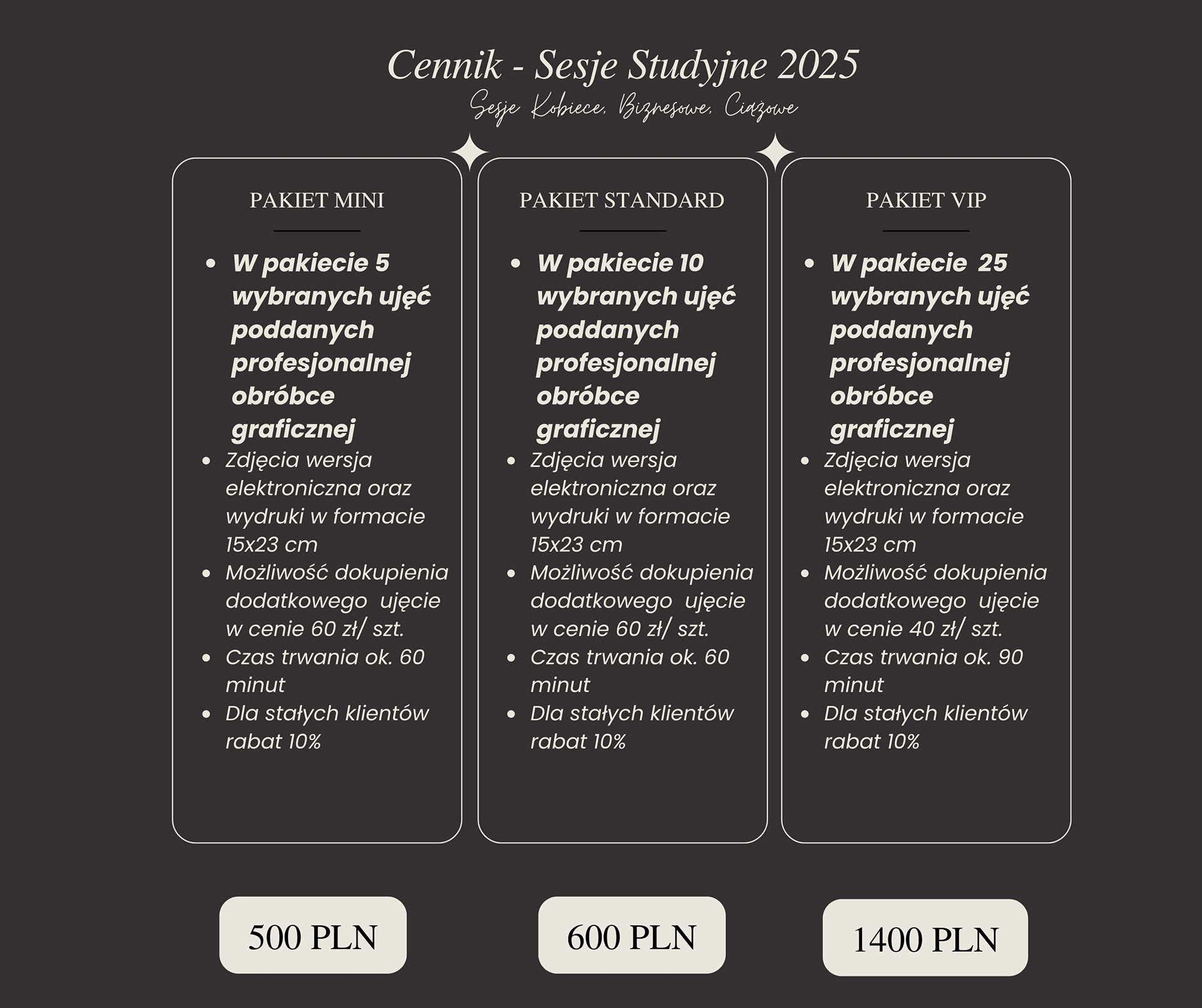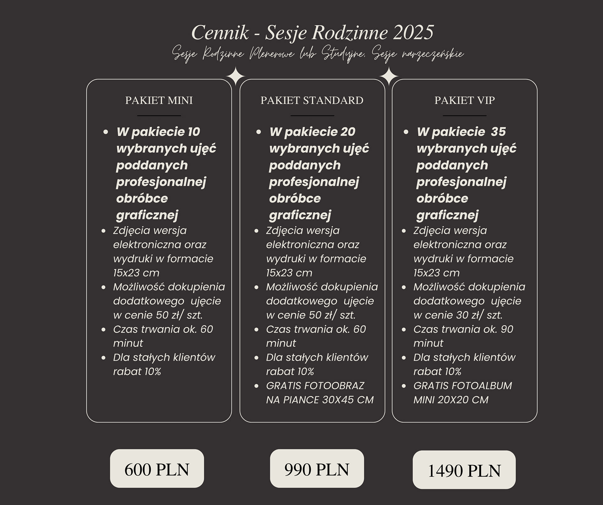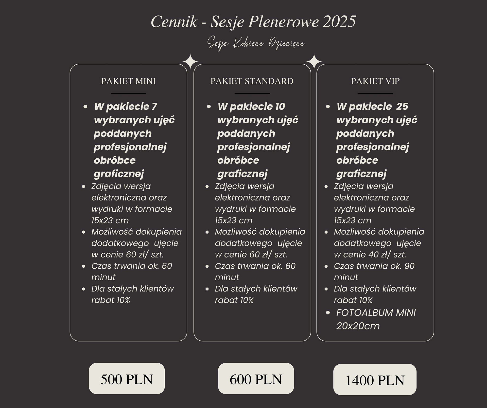Sesje Plenerowe w cenie do 30 km od Trzebinii. W przypadku dalszej odległości cenę za dojazd ustalam indywidualnie.